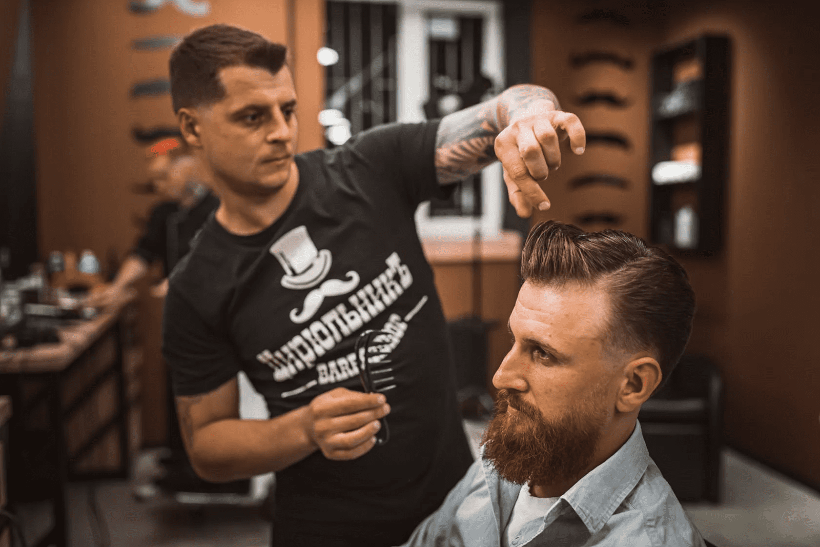 - Возможность создать стильный образ. В барбершопах обычно работают лучшие специалисты, обладающие высоким уровнем навыков и опытом. Они регулярно повышают свое профессиональное мастерство на мастер-классах, обучающих курсах и вебинарах, повышают квалификацию и даже участвуют в конкурсах. Поэтому клиент может полностью довериться барберу и получить стрижку, которая ему идеально подходит.