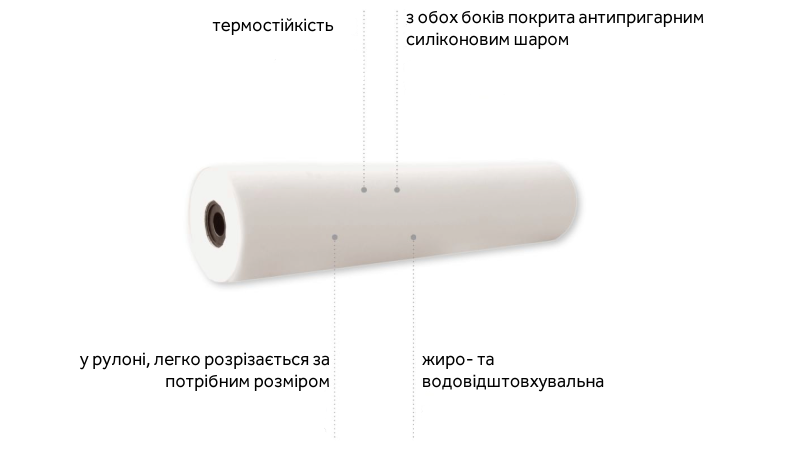Технологічно все просто й геніально водночас: на паперову основу наносять тонкий шар силікону, який полімеризується і створює рівномірне «антиприлипаюче» покриття. Воно витримує температуру випікання, не вбирає жир, практично не намокає, зберігає форму і дозволяє знімати виріб «у нуль» — без розривів і нервів. І що важливо для кухаря чи технолога, — лист працює стабільно від циклу до циклу, а значить, результат прогнозований.