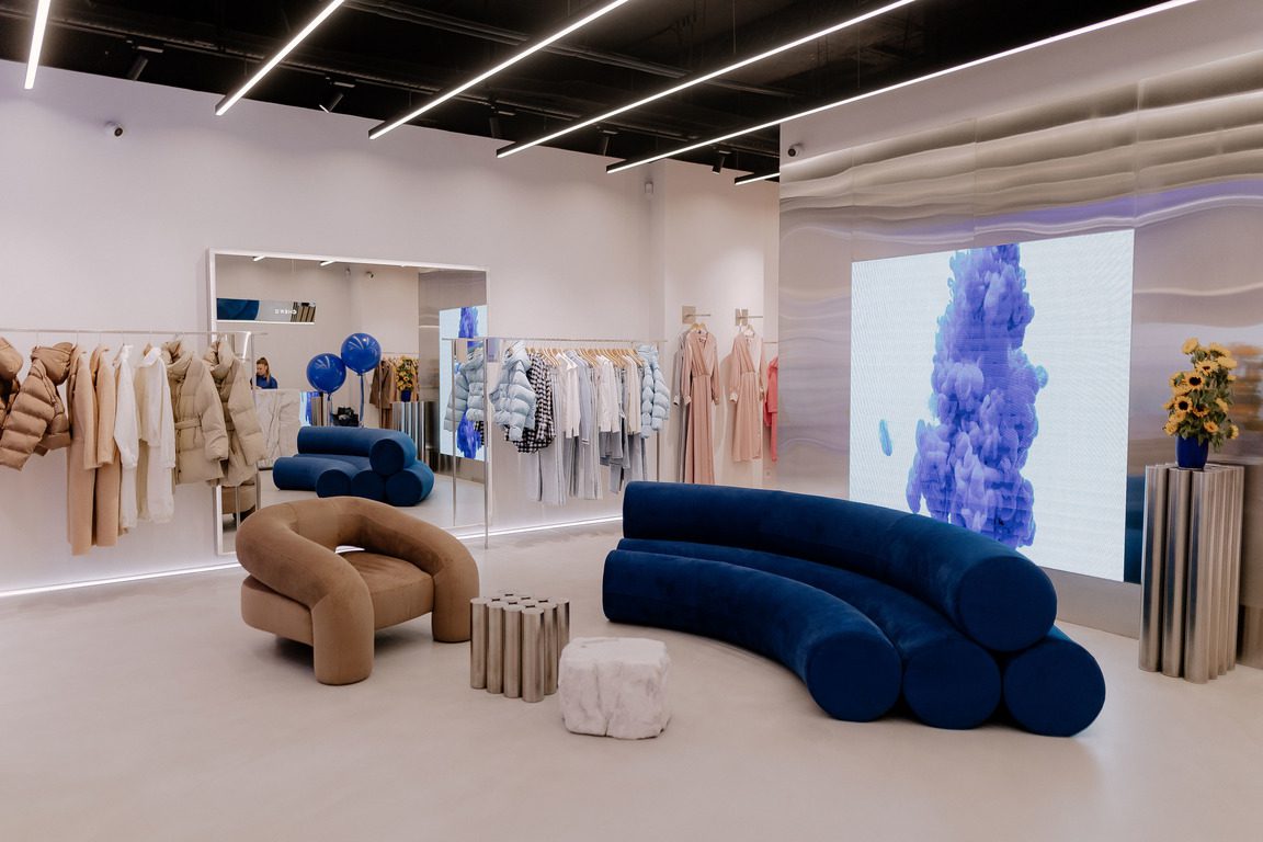 За задумом власників, дизайн магазину було оформлено у стилі ідеальної картинки з Instagram: футуристичні меблі з металевими елементами, ванна кімната у поєднанні з гардеробною, дзеркала з підсвіткою, столики для макіяжу, кран-фонтан з ігристим вином.
