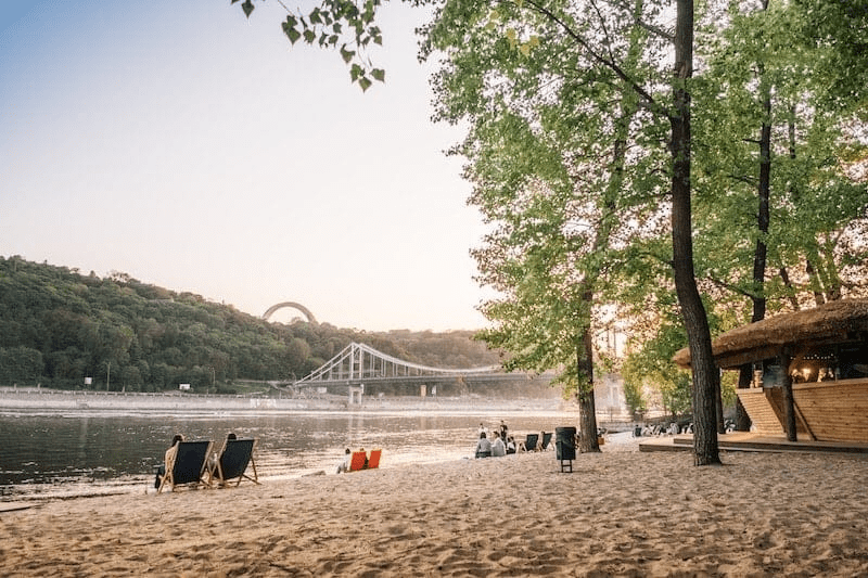 Це одне з найпопулярніших місць у Києві, де з 1918 року влітку люблять відпочивати закохані пари. Якщо раніше тут були лише дерев’яні роздягальні для бажаючих покупатися у Дніпрі, але вже наприкінці 90-х острів почали облаштовувати різними зонами відпочинку. На його території можна пограти в різні види спорту, поплавати в басейні, покататися велосипедом, а також посидіти в кафе або на шезлонгу і помилуватися красивими видами Києва.