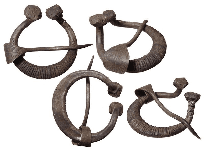 Ці прикраси мали різні форми та розміри. Серед них були округлі, видовжені та квадратні металеві фібули. Деякі з них виконували роль шпильки, яка поєднувала 2 частини тканини верхнього одягу.