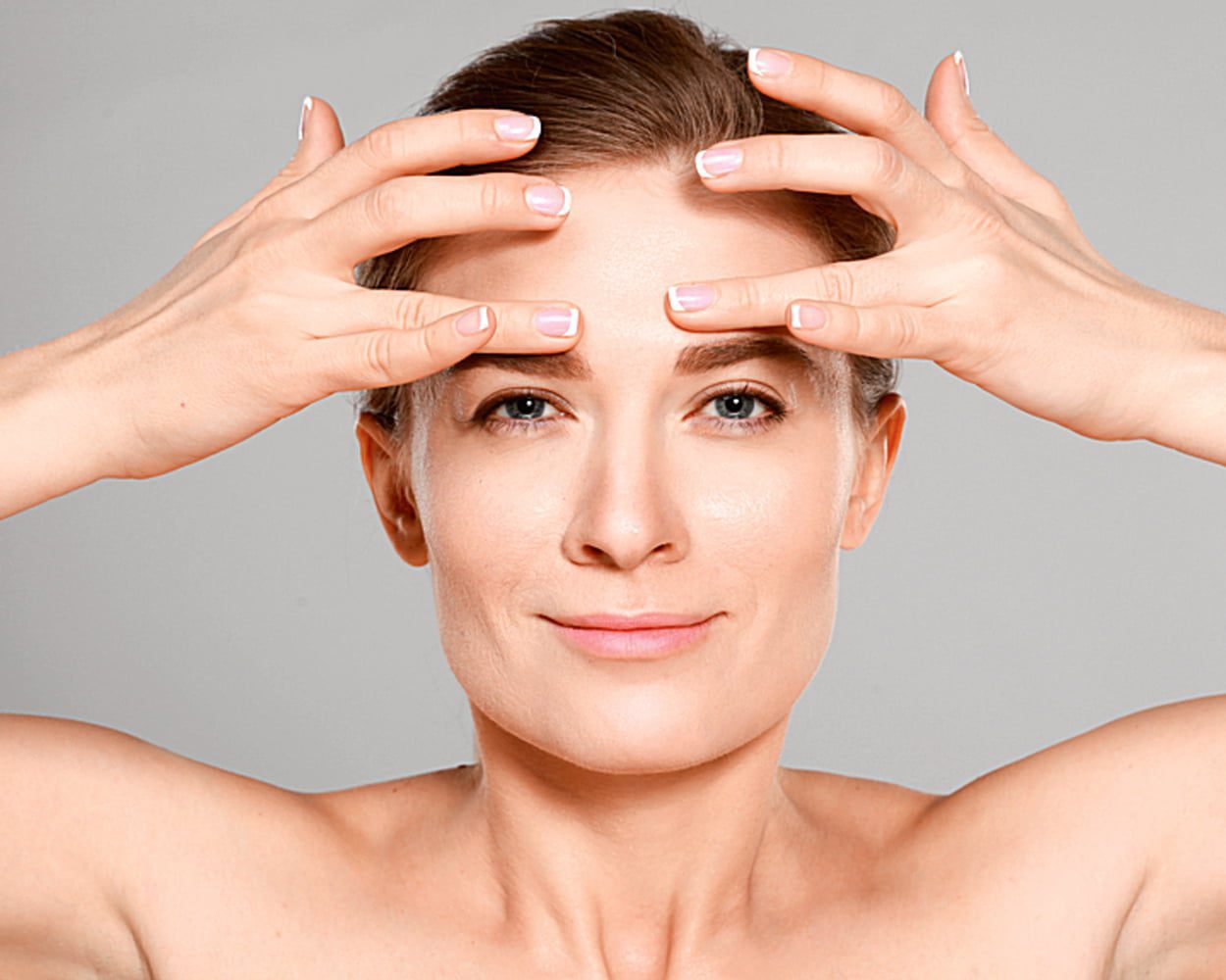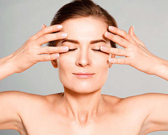 Таких вправ велика кількість і вони відомі багатьом дівчатам. Щоб зробити їх менш помітними, притисніть до чола вказівний, середній і безіменний палець обох рук. Працюйте на опір, утримуючи натягнутою шкіру і зрушуючи брови. Напружуйте в крайній точці 5-6 секунд і повторюйте до 20 циклів.